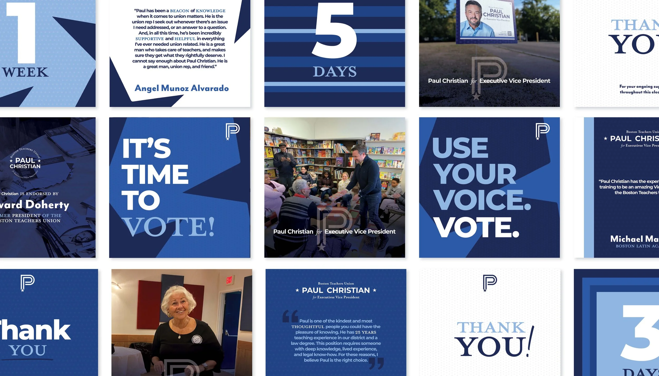 The campaign identity established a cohesive, recognizable presence throughout the Boston Teachers Union community. By aligning visual design with Paul’s longstanding reputation for honesty, advocacy, and professionalism, the brand reinforced voter confidence while maintaining an approachable, authentic tone. More than a political campaign aesthetic, the identity functioned as an extension of Paul’s professional story, as an educator, attorney, and committed advocate for teachers. It demonstrated how thoughtful design can translate personal credibility into public recognition, helping a candidate communicate trust before a single conversation even begins.