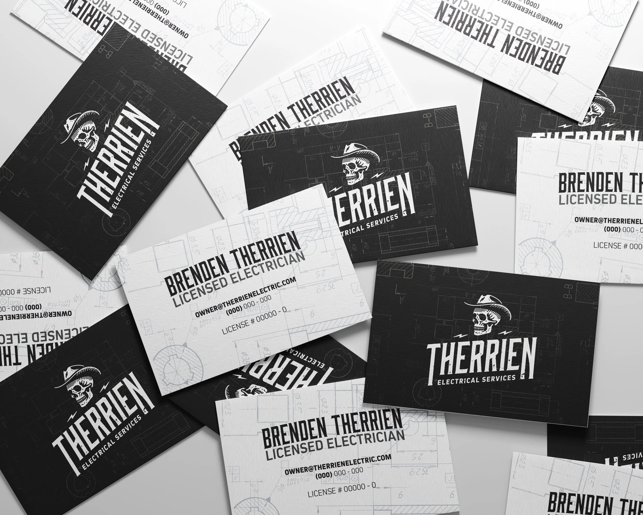 What began almost jokingly as a skeleton reference evolved into the defining brand mark. The final identity system introduced a custom logo mark featuring a skeleton electrician in a cowboy hat. Rather than feeling gimmicky, the mark became symbolic of resilience, grit, and pride in one’s craft. It transformed into a memorable visual signature that clients immediately associated with the business.